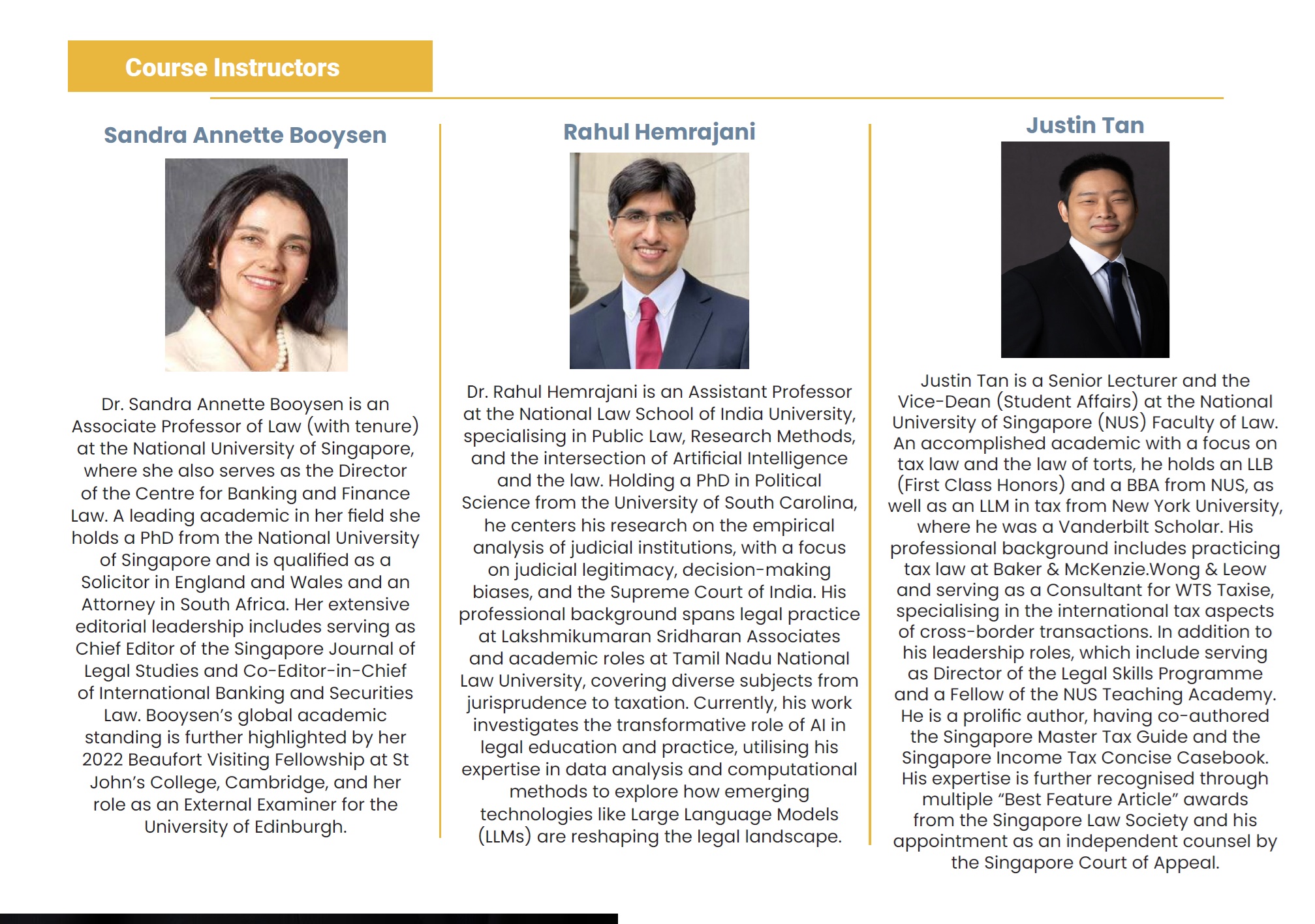 three courses taught by highly respected legal academics